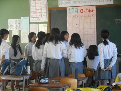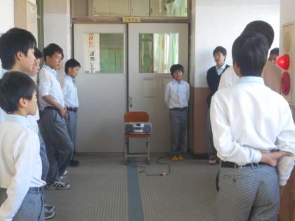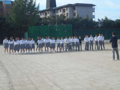 1年生の3組の教室での練習と,グラウンドに出て歌っている5組です。