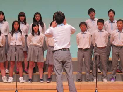 2組の歌は「時を越えて」です。指揮は石野君,伴奏は置田さんです。
