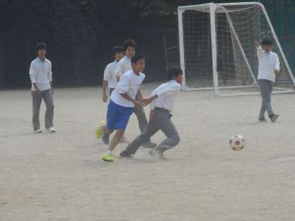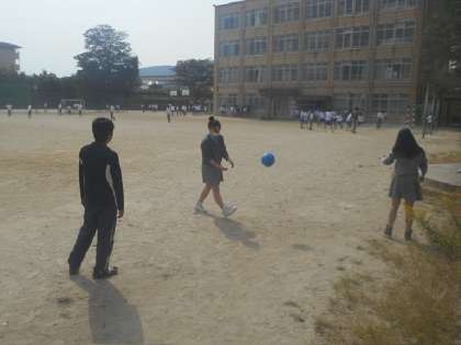 2・3年生はサッカーとバレーボールで遊んでいます。今日は深見先生も飛び入りです。