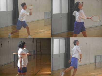 8組の体育ようすです。ランニングの後しっかり準備体操をして,今日はラケットベースボールです。