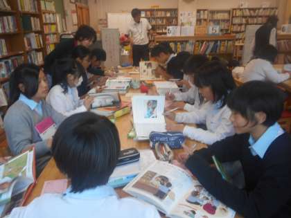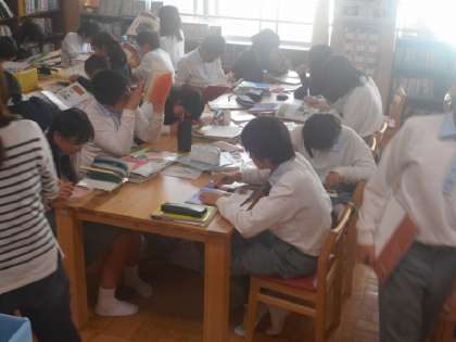 図書館支援員の位相先生に尽力頂いて,山科図書館から約70冊ものアフリカに関する本をお借りしました。それを0〜9までの分類に分け,元々図書館にある本と合わせて,各自が手にとって調べていきます。