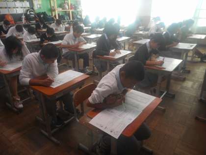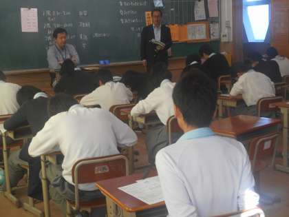 2年生の理科のテストです。終了後にはノートの提出もあるようです。