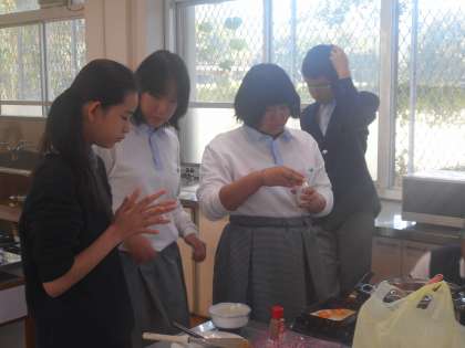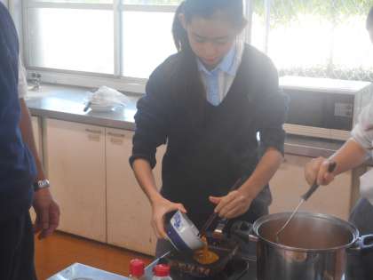 もう一つのグループは,目玉焼きとスクランブルエッグに挑戦です。ベーコンを炒めたりと自分流に工夫もしています。