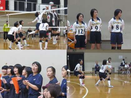 引退した3年生も応援に駆けつけてくれました。選手もこのセットの重みを感じていたのか,しっかり粘ってボールを繋ぎ競り勝ちました。