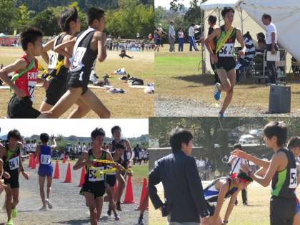 第1走者の1区は三ツ村君で、見事全体の3位でタスキを繋ぎました。2走は米山君で,3走は平手くんです。