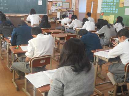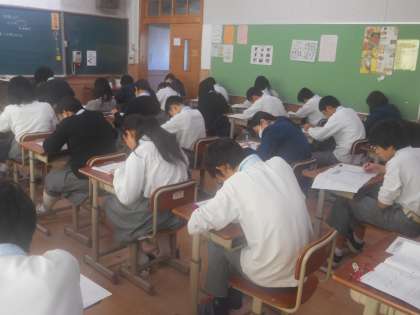 2年生も学習確認プログラムです。同じく終日の取り組みです。4時間目は社会。今日は夏が戻ったような気温で,教室の中も温室のようです。