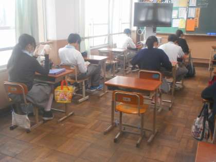 3年5組のようすです。静かに本に向き合ってます。本が苦手な人も進路を控えて,そろそろ「この一冊」を見つけたいですね。