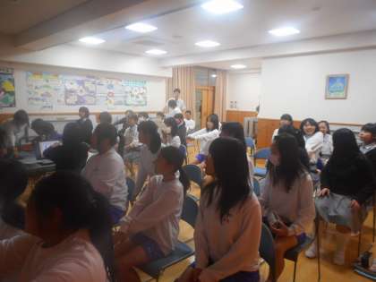今日は女子のリラクゼーションタイムが「ふれあいルーム」で行われました。体育前の1年生もたくさん来てくれて,ふれあいルームが満席です。