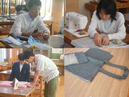 8組の家庭かでは,エコバッグを作っています。アイロンを掛けたり,ミシンを掛けたりと手順よく,また器用に作れて行ってます。