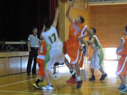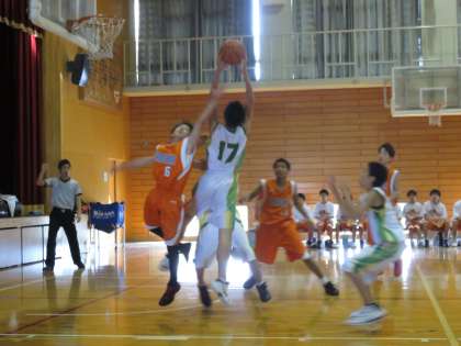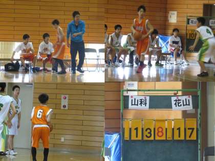 市内大会の1回戦は,花山中学の会場で花山中学と対戦です。序盤はなかなかリズムがつかめず,お互いロースコアの展開。前半はリードを許して折り返しました。