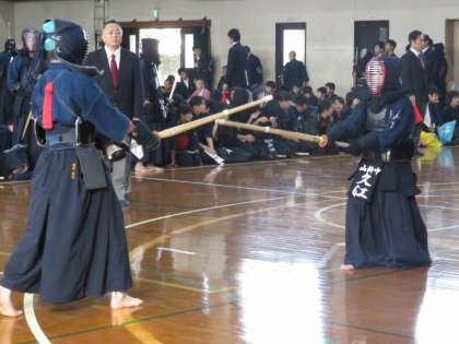 試合は先方の岡田選手が引き分け、次鋒は不戦敗。中堅の太田選手が勝利してここまでで五分とします。