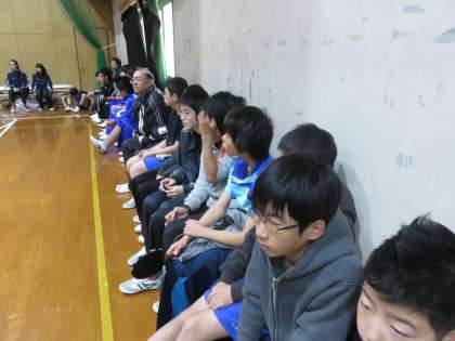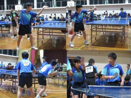 山科中は一本目,2本目と連取し,ダブルスも接戦ながらリードします。