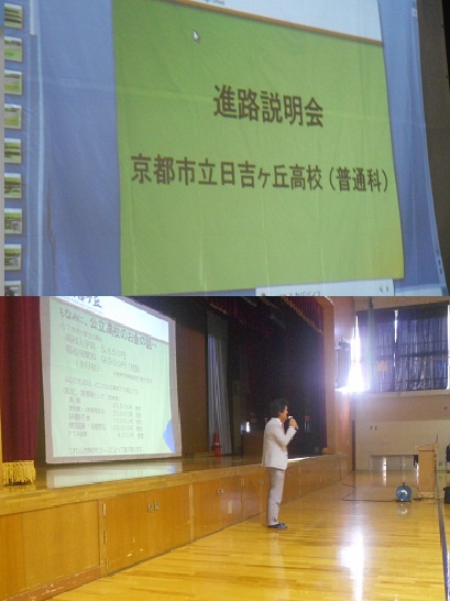 11月4日,午後から進路保護者会を開催しました。上級学校からは,日吉ヶ丘高校,京都文教高校,京都工学院高校,綾羽高校に来て頂き,説明をしていただきました。