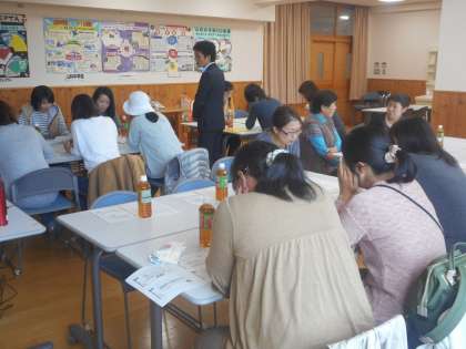 ロールプレイのような研修では、「もう学校行かなくていいでしょ?」という子どもの声に対してどう答えていくか?ペアやグループで意見を出し合いました。話し合いの中でたくさんのよい意見が出てきました。参加されたお母さん方は,こうやってお互いの悩みを相談し合う,知恵を出し合うことも大事なことだと気付かれたようです。