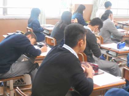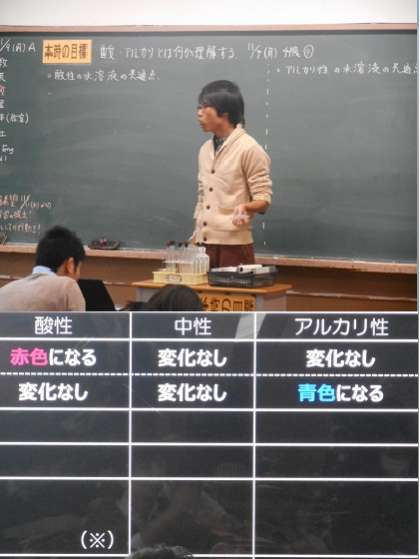 3年6組の理科のようすです。今日は,酸とアルカリの性質についての学習です。