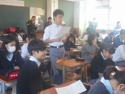 まずは前野時間までの復習で,先生の発問にテンポよく答えています。