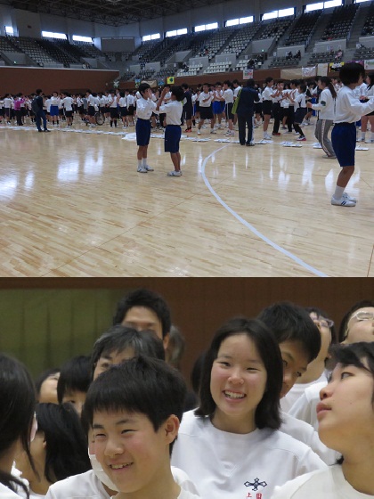 今日17日は,府立体育館「島津アリーナ」で全市の育成学級合同運動会が行われ,山科中の8組の仲間も元気に行進しました。