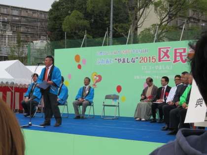 11月23日、天候が心配されましたが,無事に「ふれあい山科祭り」が開催されました。今年の実行委員長の百々学区柳生自治会長のあいさつに続いて,来賓を代表して門川京都市長からもあいさつがありました。中学校では音羽中学のブラスバンド部がテスト前にもかかわらず出演して素晴らしい演奏を披露してくれました。