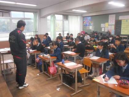 先生が熱く語っている1年5組、3組、4組のようすです。