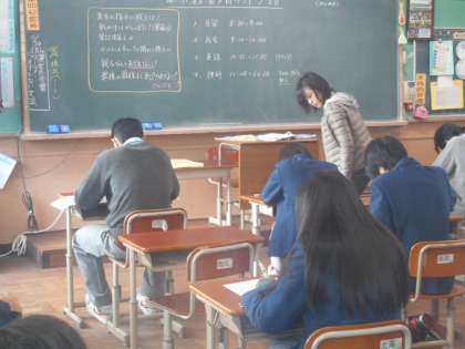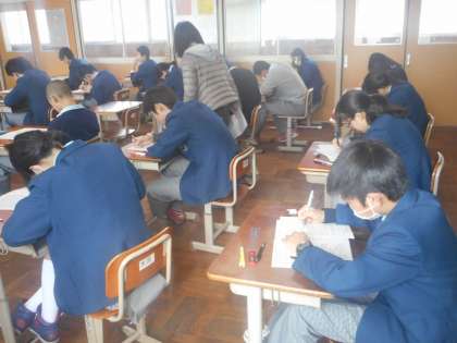 リスニングテストの後、3年3組の教室に英語の山下先生が回ってこられました。