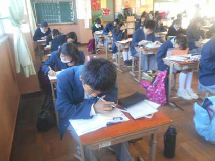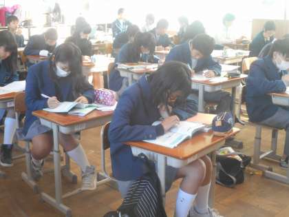 続いては4組のようすです。今日は数学・社会・保健体育と盛りだくさんなんおで,最後にどれをするか,迷っている生徒もみられます。