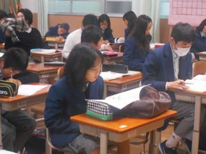 1年5組の,第4回テスト最終日の朝学習のようすです