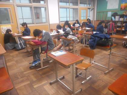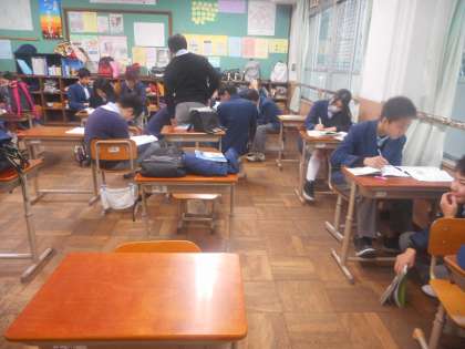3年4組と5組のテスト前のようすです。