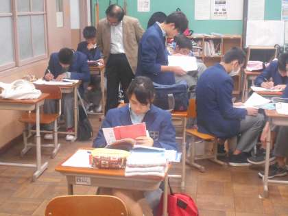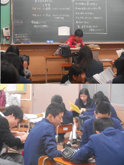 3年6組のテスト前朝学習のようすです。