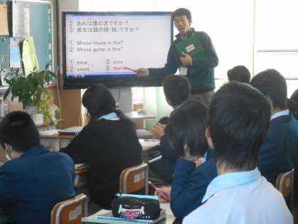1組では英語のテスト返却も終わり,今日は「Whose」を使って,「誰の?」というところの練習です。