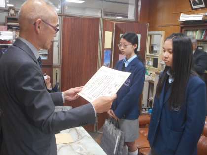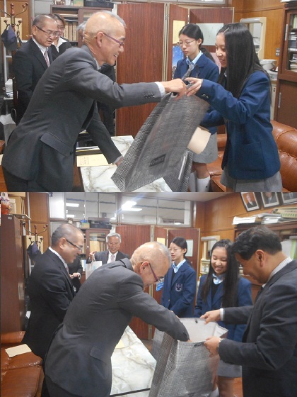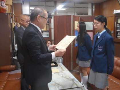 本日午前中に,全国納税貯蓄組合連合会と東山税務署の方がお見えになり,税の作文の入選者への表彰をしてくださいました。