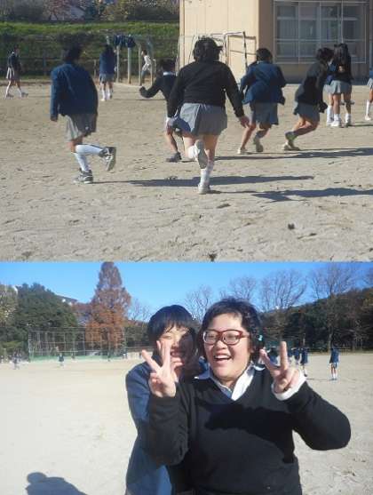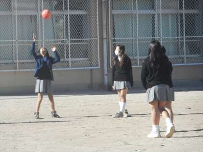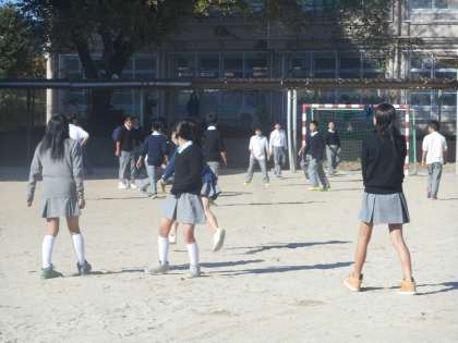 1年生は男子も女子も同じくらいたくさんの生徒が,グラウンドに出て来ています。男子はやはりサッカーですが,女子はバレーボールだけでなく鬼ごっこも楽しんでいます。