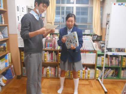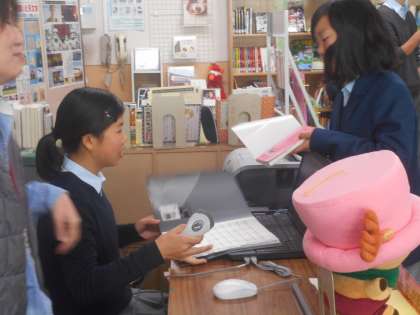 図書室の昼の開館時間です。本を読んでいると2・3年を中心に本を借りに来ていました。