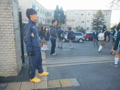 火曜日恒例の生活委員のあいさつ運動です。