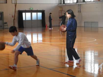 ドリブルをしてステップを踏んでジャンプ!なかなか難しそうです。