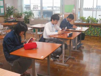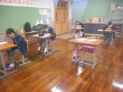 8組のA・Bクラスの読書のようすです。落ち着いて本を読めています。