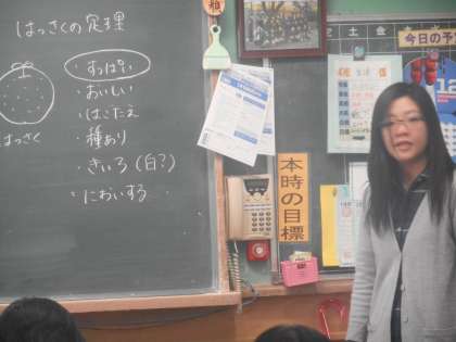 なぜか,黒板には「はっさくの定理??」先生得意のたとえ話でしょうか。