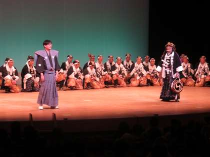 東部文化会館では,「刃傷松の廊下」「浅野内匠頭切腹」「連判状改め」「吉良邸討ち入り」などの芝居の有名な部分が演じられます。連判状を受け取るのは,毎年山科区長のつとめだそうです。
