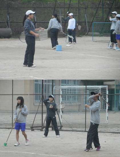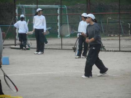 女子テニス部は今日が新年のスタートです。今日もウィンドブレーカー要らずの暖かさで,ラケットを振る手も冷たくなさそうです。