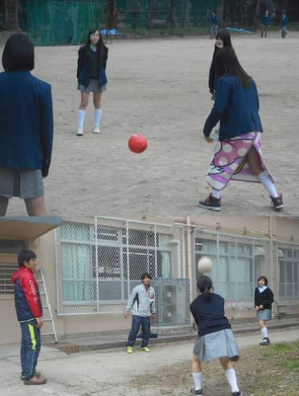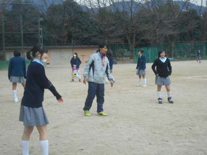 気温が10度前後と,一月らしい寒さになりました。それでも昼休みは大勢の生徒が元気に遊んでいます。山内先生,深見先生,西村先生も生徒たちと一緒に身体を動かして,暖まっています。