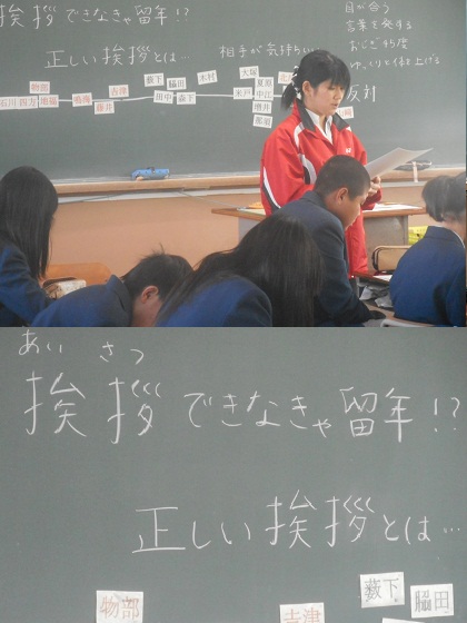 今日の道徳は「挨拶ができなければ留年? 正しい挨拶とは」というテーマで,社会の中での事例を元に考えています。
