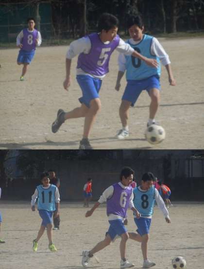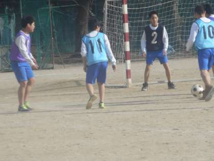 3年生の体育は,男子がグラウンドでサッカー、女子は体育館です。