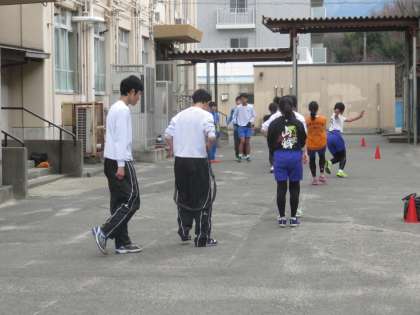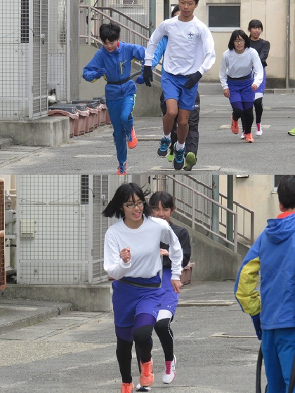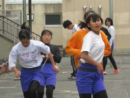 陸上部はランニングの後、体幹を鍛えるトレーニング等に取り組んでいます。