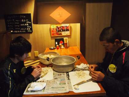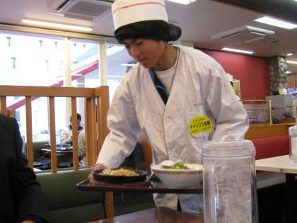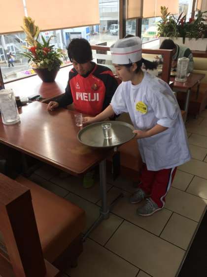 いろいろな飲食店での体験のようすです。お客様へのあいさつなども,しっかり指導もしてくださってます。