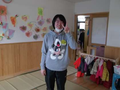 朝早くから出勤して、雪遊びもして、お昼寝の布団引きもして、少々お疲れ気味??園児さんがお昼寝をしている間も、教室の飾りを作ったり、後片付けをしたり。自分たちが通っていた保育園の先生方のご苦労と、自分たちへ注いでくださった愛情を確認する体験になっているようですね。頑張れ!