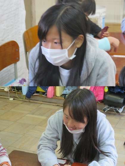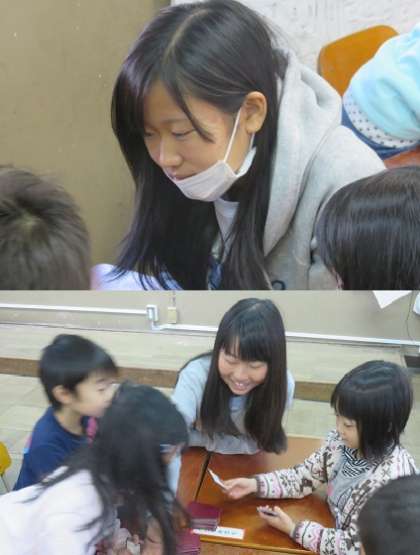 坊主めくりは遊びの要素が強いから,教室はとっても賑やかで,中学生も圧倒されています。