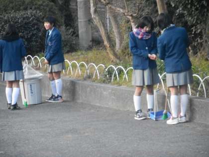 マイナス3度のなか,掃除を頑張ってくれています。学校の池を見て「もしや」と思ったのですが,山科川が凍っています。とても珍しい光景ですね。
