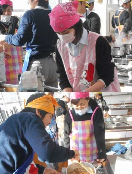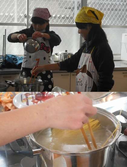生徒たちは家での経験がないからか,弱火強火の調整が分からないようです。