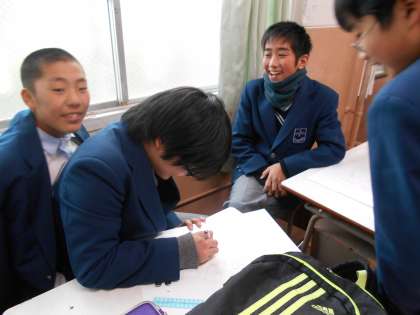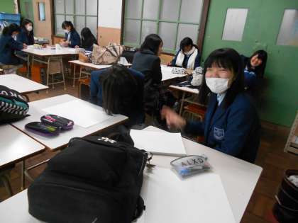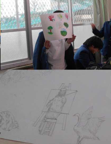美術部はそれぞれの作品に取り組んでいます。1年男子は明るいキャラクターです。