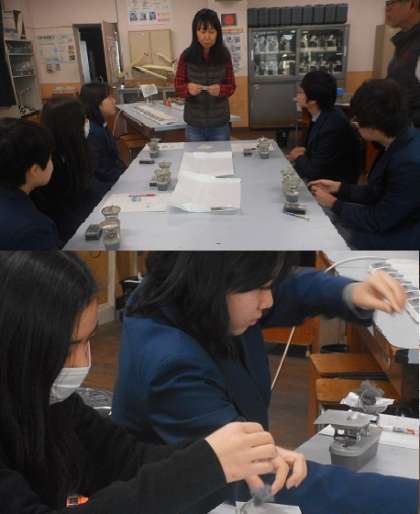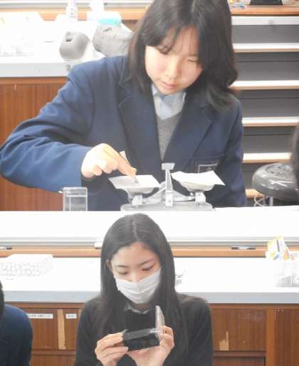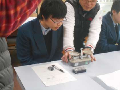 1グラムの分銅を乗せ,スチール繊維の重さを計っていきます。