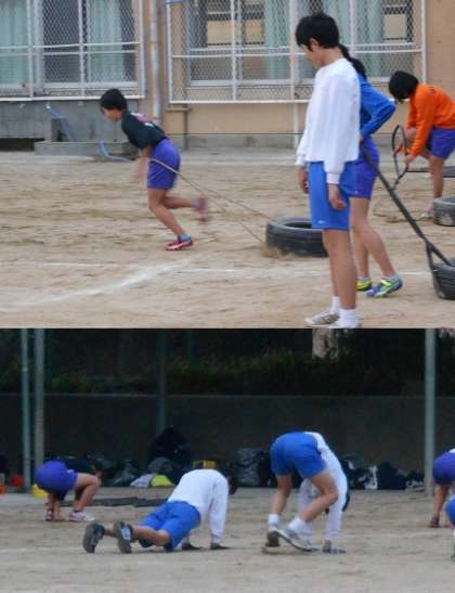 短距離グループは学校でトレーニングです。中長距離グループは東野公園に走りに行っています。